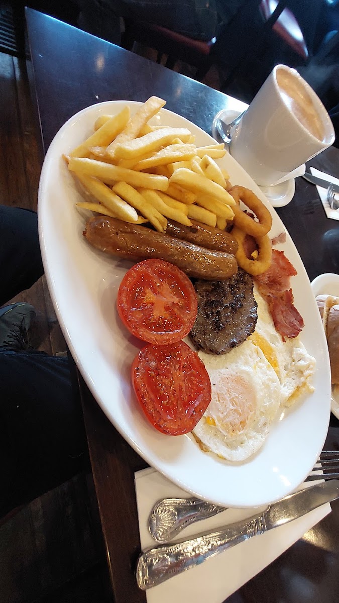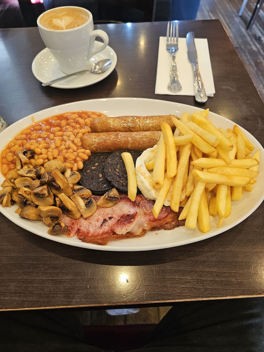 Busy greasy spoon. Ordered a big breakfast and a cup of tea - see picture. Everything was really nice except the sausages which were just OK.